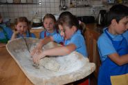 Pięciokrotnie uczniowie Szkoły Podstawowej nr 1 w Łobzie gościli w Dworku „Tradycja” w Bełcznej. Każdorazowo w trzydniowych warsztatach pod tytułem „Mali odkrywcy smaków” uczestniczyła klasa z wychowawcą. Program zajęć był bardzo bogaty: było więc ognisko i pieczenie kiełbasek, wspólne przygotowanie chleba, uczniowie poznali proces powstawania chleba - mielili ziarno na mąkę, wyrabiali ciasto, uczyli się robić makaron – wałkowali i kroili ciasto. Końcowym efektem była degustacja własnych wyrobów – kanapek ze swojego chleba i pysznego rosołu z makaronem własnej roboty. Uczniowie zwiedzali i podziwiali skarby piwnicy: stare sprzęty i narzędzia domowe. Poznali historię przeznaczenie każdej zgromadzonej w piwnicy rzeczy. Piwnica kryła też zapasy zimowe: soki, dżemy, konfitury, kiszonki; można było poznać ich znaczenie w jadłospisie, walory odżywcze i smakowe. Dzieci poznały też historie szczecińskich pierników, wszyscy uczestnicy przygotowywali ciasto i formy do wypieku pierników szczecińskich, każdy uczestnik otrzymał też piernik na pamiątkę pobytu w dworku. Bardzo ciekawie przebiegały zajęcia z sianoplotów: dzieci wykonywały zabawne zwierzaczki z siana. Prelegenci z zakresu turystyki regionalnej przedstawili walory rekreacyjno – turystyczne nasze regionu, okazało się, że w naszym otoczeniu jest wiele ciekawych zabytków i pomników przyrody wartych zobaczenia. Uczniowie poznali szlaki rowerowe i piesze w naszej gminie. Zgłębiali liczne tajniki przyrody: rzeki, jeziora a także faunę regionu. Pomocne tu były mapy oraz prezentacja multimedialna. Niektórzy byli na prawdziwym grzybobraniu, nie tylko zbierali grzyby ale też rozpoznawali je. W ramach relaksu były zajęcia z karaoke, każdy mógł tu odkryć swój talent piosenkarski. Aby rozwinąć sprawność fizyczną, wszyscy uczyli się chodzić z kijkami (Nordic Walking) i grali w bulle (zupełna nowość, nie ma takich zajęć w szkole). Przy okazji codziennych posiłków dzieci uczyły się nakrywać do stołu, podawać potrawy, posługiwać się poprawnie sztućcami. Każdy z uczestników był zaangażowany we wspólną pracę, wszyscy odpowiadali za końcowy efekt, to powodowało, że zespoły klasowe bardzo się integrowały. Młodzież odkryła, że życie na wsi nie musi być nudne a rodzima tradycja kryje jeszcze wiele tajemnic. Każda grupa ze smutkiem opuszczała gościnny dworek. Warsztaty w Dworku Tradycja są przykładem na to, że można lekcje przyrody, historii innych przedmiotów poprowadzić z dala od sali szkolnej, poprzez bezpośredni kontakt z przyrodą i działanie. Dzieci bardzo długo nie zapomną smaku własnoręcznie przygotowanego chleba, czy makaronu, a wszystko to dzięki takim pasjonatom, jak państwo Szubowie, u których mieliśmy przyjemność gościć. Wicedyrektor szkoły Ilona Osieczko